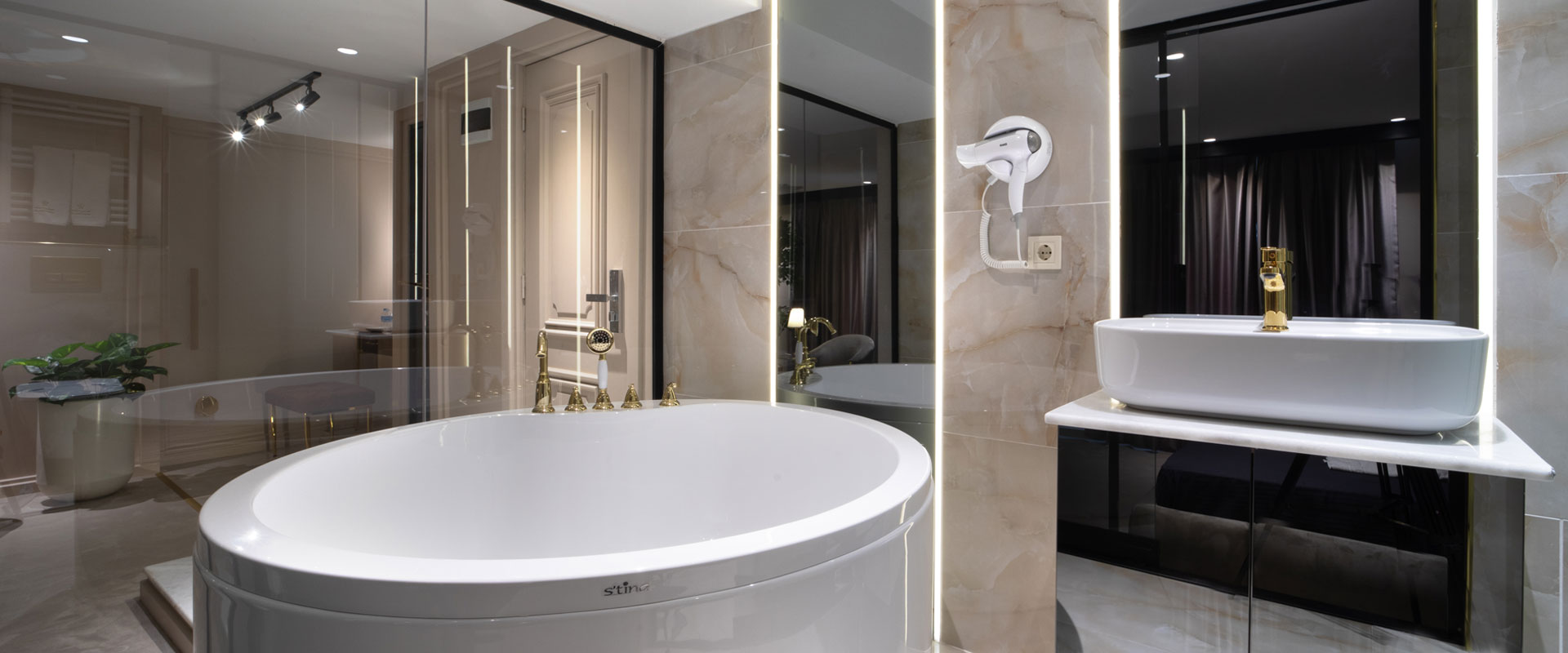 Enjoy a luxurious night's sleep in one of our spacious Executive Suites! Each room comes with comfortable sitting areas. Some rooms The Turkish Hammam includes a jakuzi, 1 queen bed and single sofa bed, premium bedding, working desk. In-room safe, wireless Internet access - complimentary. 32-inch Flat screen Television in living room, deluxe hot continental breakfast included. Private lounge access.